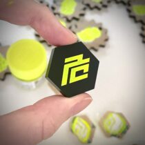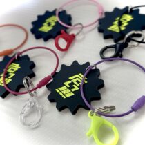 マットブラックのアクリルにプラモデル塗料の蛍光イエローを塗り、キーホルダーを…